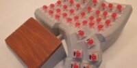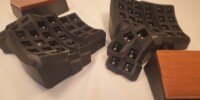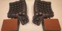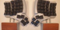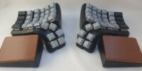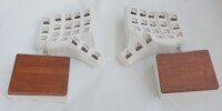You can choose to have hand rests that are magnetically attached to the case. They are tilted in X and Y direction to fit the tilt angle of the keyboard. The inserts, where hands actually rest, can be either wood or faux leather.
